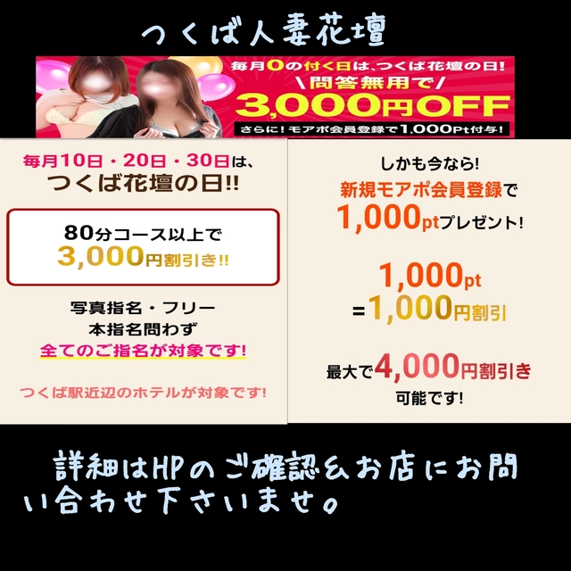本日20日(木)は土浦人妻花壇【11月会員特典(虫掛エリア割引)】【ご新規割引】【口コミ投稿特典】【アンケート特典】【モアポW特典】&つくば人妻花壇【つくば花壇の日】開催日です